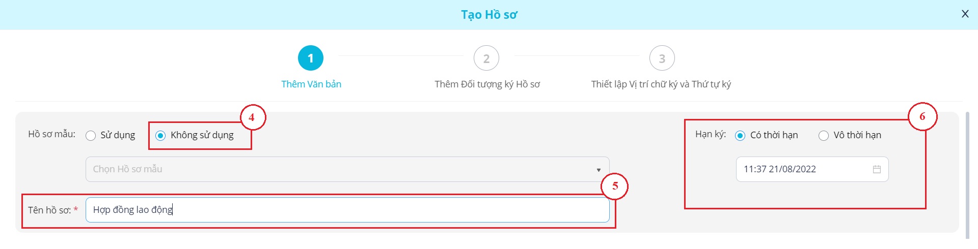 - Chọn Hạn ký (6) (Có thời hạn hoặc Vô thời hạn)