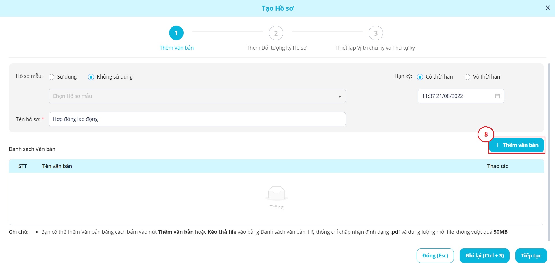 Bài viết này sẽ hướng dẫn bạn cách tạo Hợp đồng điện tử không sử dụng Hồ sơ mẫu, để thực hiện bạn thao tác theo các bước sau: