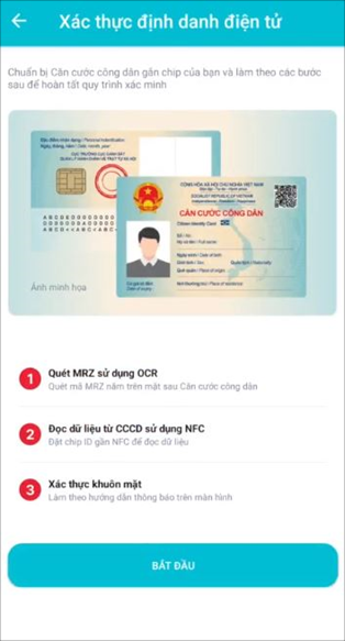 Bước 2: Hệ thống chuyển sang giao diện Xác thực định danh điện tử.